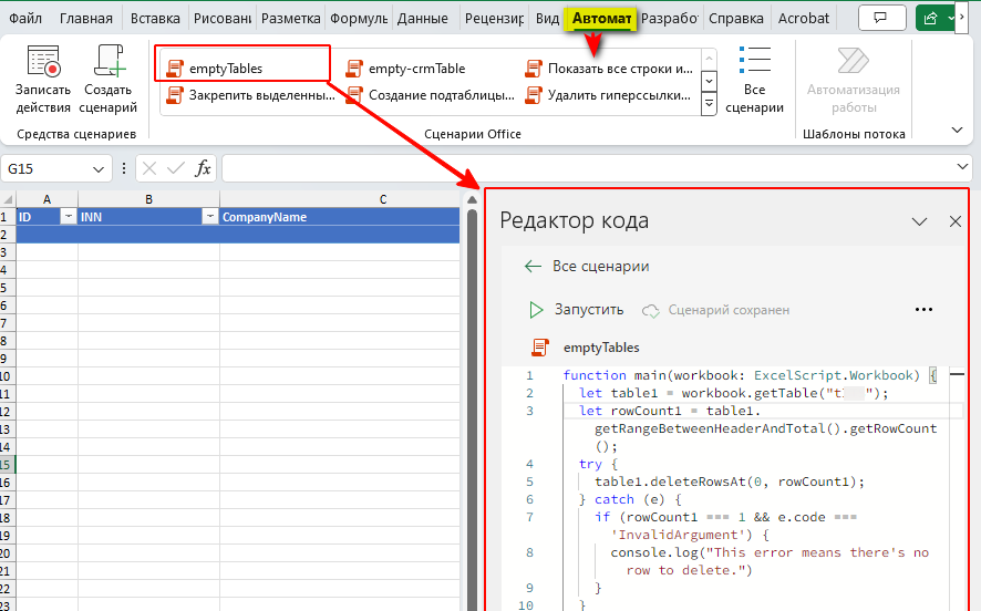- скрипт можно вызвать и применить к любому файлу Excel в облаке (если у вас нет специфики при работе с конкретными наборами данных),