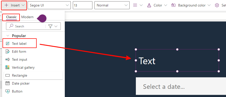 3) Остается указать сплошную заливку нашего Label со значением и перетащить на поле вывода DatePickerCanvas1. Для сплошной заливки, чтобы цвет совпадал с заливкой компонента DatePickerCanvas1 нужно указать #F5F5F5.