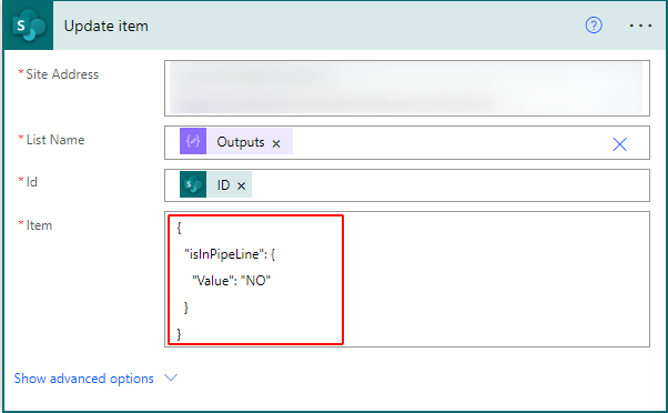 Итак, у нас есть некий SharePoint List. Необходимо обновить для созданных записей значение поля isInPipeLine, установив списковое значение "NO". В Power Automate сценарий будет выглядеть достаточно просто
