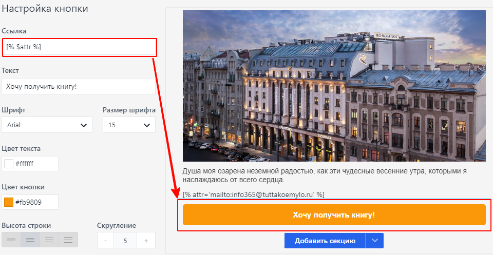 В верстаемом письме просто пропишите блок HTML с примерно таким кодом: